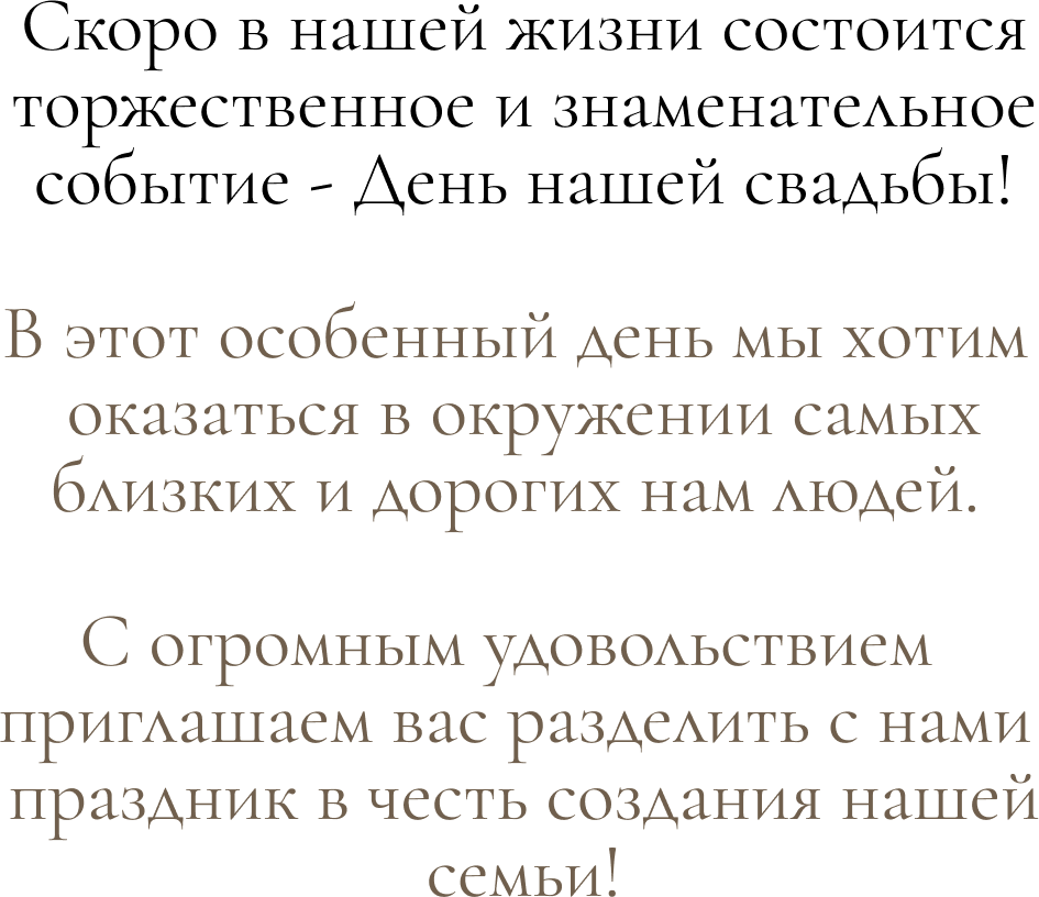 [{"lid":"1655212160877","ls":"10","loff":"","li_type":"in","li_title":"\u0412\u0430\u0448\u0435 \u0418\u043c\u044f \u0438 \u0424\u0430\u043c\u0438\u043b\u0438\u044f ","li_ph":"\u0418\u0432\u0430\u043d \u0418\u0432\u0430\u043d\u043e\u0432\/\u041c\u0430\u0440\u0438\u044f \u0418\u0432\u0430\u043d\u043e\u0432\u0430","li_req":"y","li_nm":"\u0412\u0430\u0448\u0435 \u0418\u043c\u044f \u0438 \u0424\u0430\u043c\u0438\u043b\u0438\u044f "},{"lid":"1655212160878","ls":"20","loff":"","li_type":"rd","li_title":"\u0421\u043c\u043e\u0436\u0435\u0442\u0435 \u043b\u0438 \u0412\u044b \u043f\u0440\u0438\u0441\u0443\u0442\u0441\u0442\u0432\u043e\u0432\u0430\u0442\u044c \u043d\u0430 \u043d\u0430\u0448\u0435\u043c \u043c\u0435\u0440\u043e\u043f\u0440\u0438\u044f\u0442\u0438\u0438?","li_req":"y","li_variants":"\u0414\u0430\n\u041d\u0435\u0442","li_radcb":"rb","li_nm":"\u0421\u043c\u043e\u0436\u0435\u0442\u0435 \u043b\u0438 \u0412\u044b \u043f\u0440\u0438\u0441\u0443\u0442\u0441\u0442\u0432\u043e\u0432\u0430\u0442\u044c \u043d\u0430 \u043d\u0430\u0448\u0435\u043c \u043c\u0435\u0440\u043e\u043f\u0440\u0438\u044f\u0442\u0438\u0438"},{"lid":"1714138913289","ls":"30","loff":"","li_type":"rd","li_title":"\u0421\u043c\u043e\u0436\u0435\u0442\u0435 \u043b\u0438 \u0412\u044b \u0441\u0430\u043c\u043e\u0441\u0442\u043e\u044f\u0442\u0435\u043b\u044c\u043d\u043e \u0434\u043e\u0431\u0440\u0430\u0442\u044c\u0441\u044f \u0434\u043e \u043c\u0435\u0441\u0442\u0430 \u043f\u0440\u043e\u0432\u0435\u0434\u0435\u043d\u0438\u044f \u043d\u0430\u0448\u0435\u0433\u043e \u043c\u0435\u0440\u043e\u043f\u0440\u0438\u044f\u0442\u0438\u044f?","li_req":"y","li_variants":"\u0414\u0430\n\u041d\u0435\u0442","li_radcb":"rb","li_nm":"\u0421\u043c\u043e\u0436\u0435\u0442\u0435 \u043b\u0438 \u0412\u044b \u0441\u0430\u043c\u043e\u0441\u0442\u043e\u044f\u0442\u0435\u043b\u044c\u043d\u043e \u0434\u043e\u0431\u0440\u0430\u0442\u044c\u0441\u044f \u0434\u043e \u043c\u0435\u0441\u0442\u0430 \u043f\u0440\u043e\u0432\u0435\u0434\u0435\u043d\u0438\u044f \u043d\u0430\u0448\u0435\u0433\u043e \u043c\u0435\u0440\u043e\u043f\u0440\u0438\u044f\u0442\u0438\u044f"},{"lid":"1655212408672","ls":"40","loff":"y","li_type":"in","li_title":"\u0418\u043c\u044f \u0438 \u0424\u0430\u043c\u0438\u043b\u0438\u044f \u0432\u0430\u0448\u0435\u0433\u043e \u0441\u043f\u0443\u0442\u043d\u0438\u043a\u0430\/\u0441\u043f\u0443\u0442\u043d\u0438\u0446\u044b ","li_ph":"\u0418\u0432\u0430\u043d \u0418\u0432\u0430\u043d\u043e\u0432\/\u041c\u0430\u0440\u0438\u044f \u0418\u0432\u0430\u043d\u043e\u0432\u0430","li_req":"y","li_nm":"\u0418\u043c\u044f \u0438 \u0424\u0430\u043c\u0438\u043b\u0438\u044f \u0432\u0430\u0448\u0435\u0433\u043e \u0441\u043f\u0443\u0442\u043d\u0438\u043a\u0430\u0441\u043f\u0443\u0442\u043d\u0438\u0446\u044b "},{"lid":"1655212160879","ls":"50","loff":"","li_type":"rd","li_title":"\u0423\u043a\u0430\u0436\u0438\u0442\u0435 \u0412\u0430\u0448\u0438 \u043f\u0440\u0435\u0434\u043f\u043e\u0447\u0442\u0435\u043d\u0438\u044f \u0432 \u0430\u043b\u043a\u043e\u0433\u043e\u043b\u0435?","li_variants":"\u0428\u0430\u043c\u043f\u0430\u043d\u0441\u043a\u043e\u0435\n\u041c\u0430\u0440\u0442\u0438\u043d\u0438 bianco\n\u041c\u0430\u0440\u0442\u0438\u043d\u0438 fiero\n\u041a\u043e\u043d\u044c\u044f\u043a\n\u0412\u0438\u0441\u043a\u0438\n\u0412\u043e\u0434\u043a\u0430\n\u041d\u0435 \u043f\u044c\u044e","li_radcb":"cb","li_nm":"\u0423\u043a\u0430\u0436\u0438\u0442\u0435 \u0412\u0430\u0448\u0438 \u043f\u0440\u0435\u0434\u043f\u043e\u0447\u0442\u0435\u043d\u0438\u044f \u0432 \u0430\u043b\u043a\u043e\u0433\u043e\u043b\u0435"},{"lid":"1714139020641","ls":"60","loff":"","li_type":"rd","li_title":"\u0411\u0443\u0434\u0435\u0442\u0435 \u043b\u0438 \u0412\u044b \u0431\u0440\u0430\u0442\u044c \u043d\u0430 \u043d\u0430\u0448\u0435 \u043c\u0435\u0440\u043e\u043f\u0440\u0438\u044f\u0442\u0438\u0435 \u0434\u0435\u0442\u0435\u0439?","li_variants":"\u0414\u0430\n\u041d\u0435\u0442","li_radcb":"cb","li_nm":"\u0411\u0443\u0434\u0435\u0442\u0435 \u043b\u0438 \u0412\u044b \u0431\u0440\u0430\u0442\u044c \u043d\u0430 \u043d\u0430\u0448\u0435 \u043c\u0435\u0440\u043e\u043f\u0440\u0438\u044f\u0442\u0438\u0435 \u0434\u0435\u0442\u0435\u0439"},{"lid":"1708327726193","ls":"70","loff":"y","li_type":"rd","li_title":"\u041f\u0440\u0435\u0434\u043f\u043e\u0447\u0442\u0435\u043d\u0438\u044f \u043f\u043e \u043d\u0430\u043f\u0438\u0442\u043a\u0430\u043c \u0432\u0430\u0448\u0435\u0433\u043e \u0441\u043f\u0443\u0442\u043d\u0438\u043a\u0430\/\u0441\u043f\u0443\u0442\u043d\u0438\u0446\u044b:","li_variants":"\u041d\u0435 \u043f\u044c\u044e \u0430\u043b\u043a\u043e\u0433\u043e\u043b\u044c\n\u0418\u0433\u0440\u0438\u0441\u0442\u043e\u0435\n\u041a\u0440\u0430\u0441\u043d\u043e\u0435 \u043f\u043e\u043b\u0443\u0441\u0443\u0445\u043e\u0435\/\u0441\u0443\u0445\u043e\u0435\n\u041a\u0440\u0430\u0441\u043d\u043e\u0435 \u043f\u043e\u043b\u0443\u0441\u043b\u0430\u0434\u043a\u043e\u0435\n\u0411\u0435\u043b\u043e\u0435 \u043f\u043e\u043b\u0443\u0441\u0443\u0445\u043e\u0435\/\u0441\u0443\u0445\u043e\u0435\n\u0411\u0435\u043b\u043e\u0435 \u043f\u043e\u043b\u0443\u0441\u043b\u0430\u0434\u043a\u043e\u0435\n\u0412\u0438\u0441\u043a\u0438\n\u0412\u043e\u0434\u043a\u0430\n\u041a\u043e\u043d\u044c\u044f\u043a","li_radcb":"cb","li_nm":"\u041f\u0440\u0435\u0434\u043f\u043e\u0447\u0442\u0435\u043d\u0438\u044f \u043f\u043e \u043d\u0430\u043f\u0438\u0442\u043a\u0430\u043c \u0432\u0430\u0448\u0435\u0433\u043e \u0441\u043f\u0443\u0442\u043d\u0438\u043a\u0430\u0441\u043f\u0443\u0442\u043d\u0438\u0446\u044b:"},{"lid":"1708327745664","ls":"80","loff":"y","li_type":"rd","li_title":"\u0412\u0430\u0448\u0435 \u043f\u0440\u0435\u0434\u043f\u043e\u0447\u0442\u0435\u043d\u0438\u0435 \u043f\u043e \u0433\u043e\u0440\u044f\u0447\u0435\u043c\u0443:","li_variants":"\u041c\u044f\u0441\u043e\n\u0420\u044b\u0431\u0430","li_radcb":"rb","li_nm":"\u0412\u0430\u0448\u0435 \u043f\u0440\u0435\u0434\u043f\u043e\u0447\u0442\u0435\u043d\u0438\u0435 \u043f\u043e \u0433\u043e\u0440\u044f\u